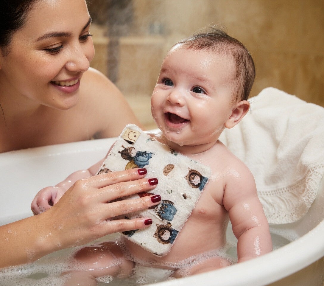Idéal dès la naissance, ce petit gant devient vite le rituel préféré du bain des bébé.